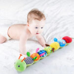 Perfect for tummy time sessions, this caterpillar encourages babies to reach, grab, and develop crucial motor skills. The musical elements create auditory interest whilst bright colours support visual tracking abilities. Machine washable construction ensures hygiene maintenance, and the portable size makes it ideal for prams, car seats, and travel entertainment throughout baby’s first year.