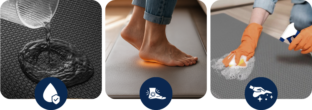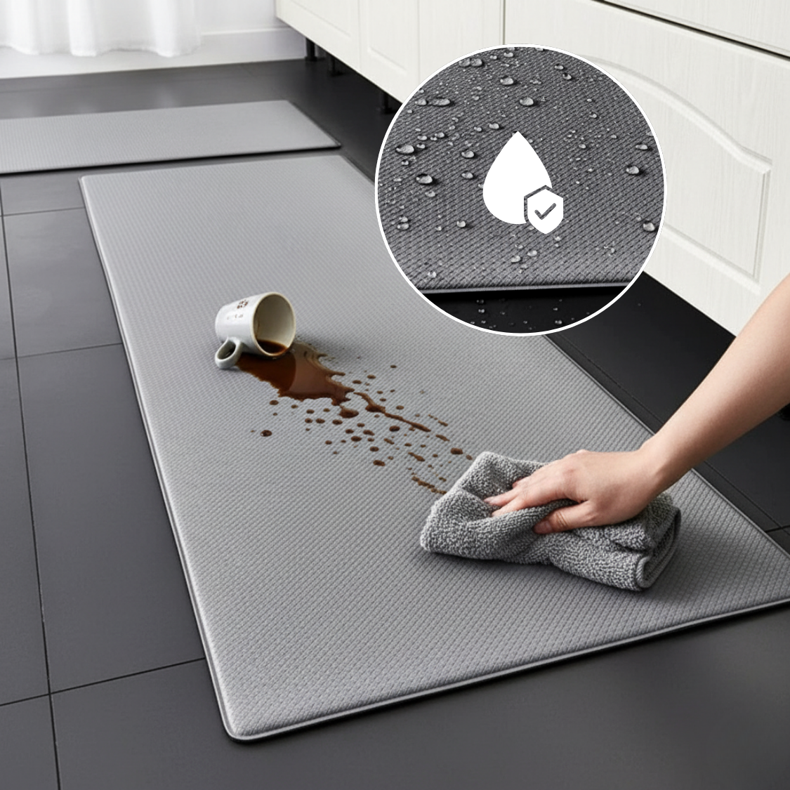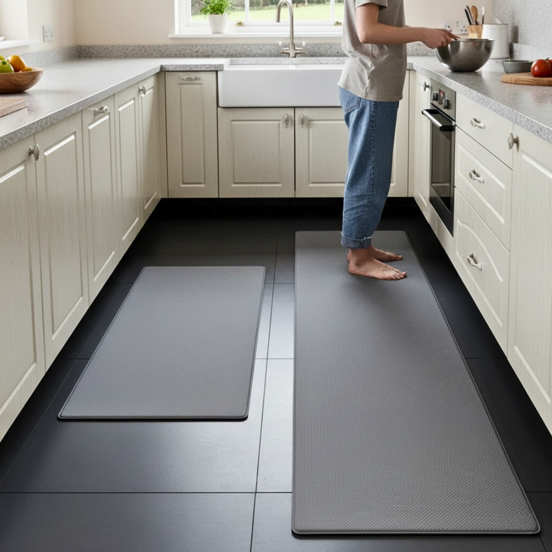 Blending smart design with daily comfort, this mat keeps your kitchen safer, cleaner and more inviting. The soft-touch surface absorbs impact and muffles noise, while the waterproof, wipe-clean finish makes spills disappear in seconds. Its slim, modern look fits any UK home – from cozy flats to open-plan family kitchens – offering a simple upgrade that instantly makes everyday life more comfortable and stress-free.