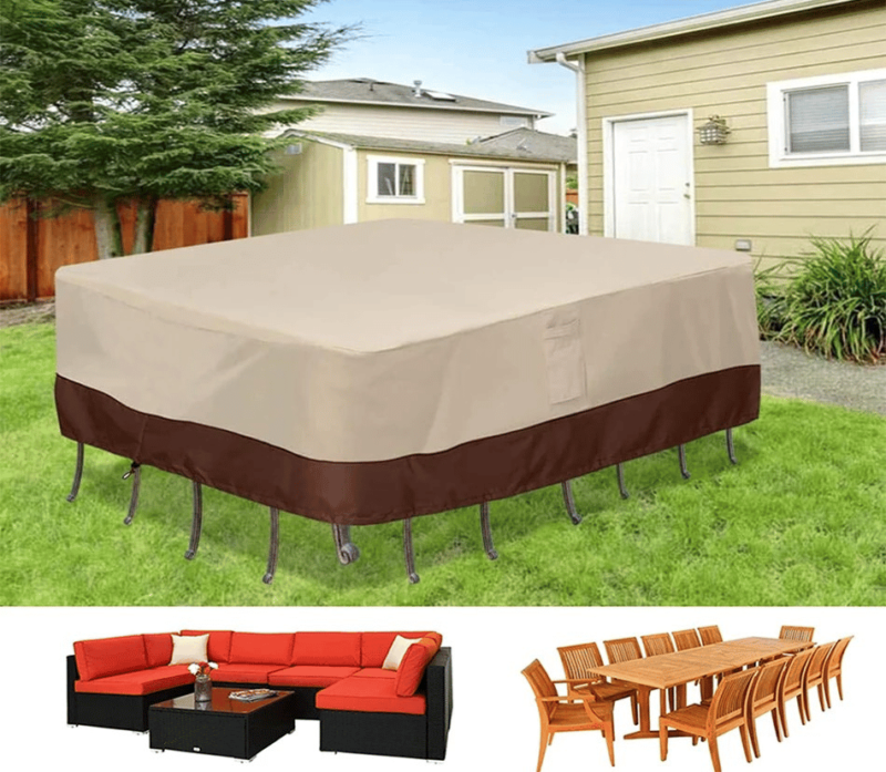 - Waterproof and Durable: The patio furniture cover boasts a waterproof PU coating and double-stitched seams with waterproof tape, ensuring effective water resistance and durability.