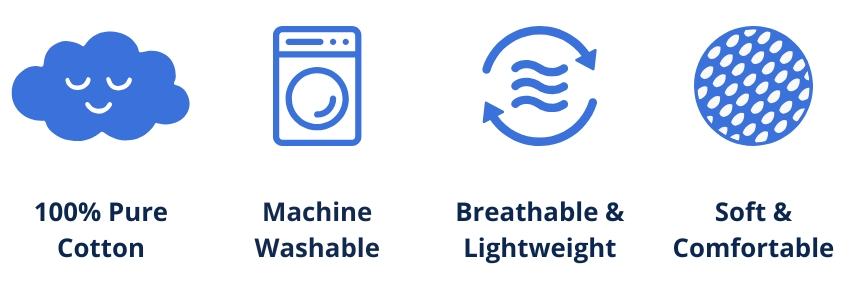 - Pure cotton fabric – breathable, natural, and gentle on sensitive skin