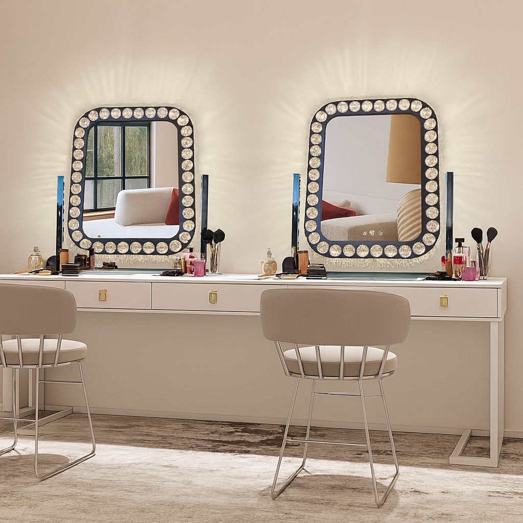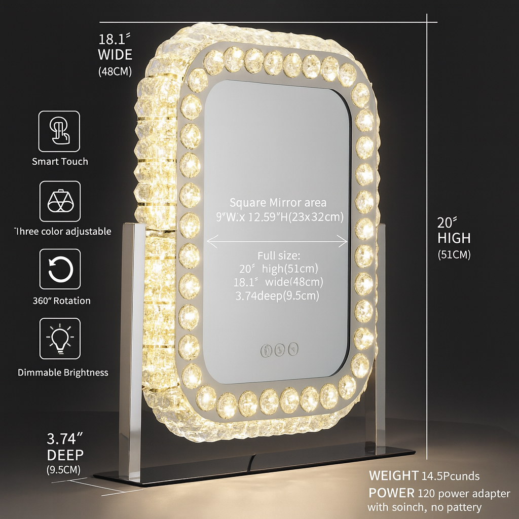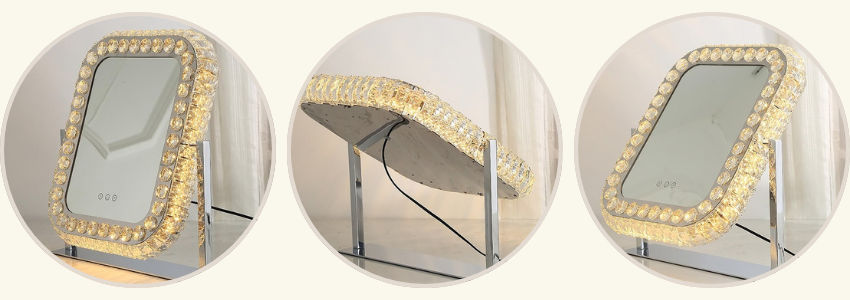 Enjoy effortless functionality with the smart touch switch controls and a fully 360° rotating frame for the perfect angle every time. The combination of style, versatility, and crystal clarity ensures your makeup application, skincare, and hairstyling are flawless. Upgrade your beauty space today and enjoy professional-quality lighting at home.
