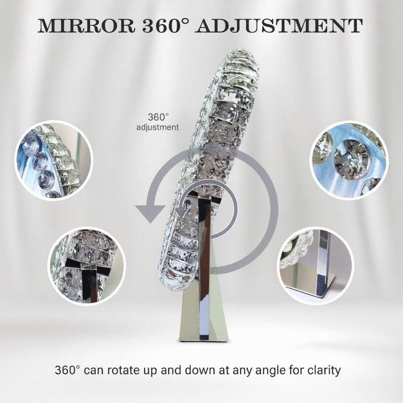 Enjoy effortless functionality with the smart touch switch controls and a fully 360° rotating frame for the perfect angle every time. The combination of style, versatility, and crystal clarity ensures your makeup application, skincare, and hairstyling are flawless. Upgrade your beauty space today and enjoy professional-quality lighting at home.