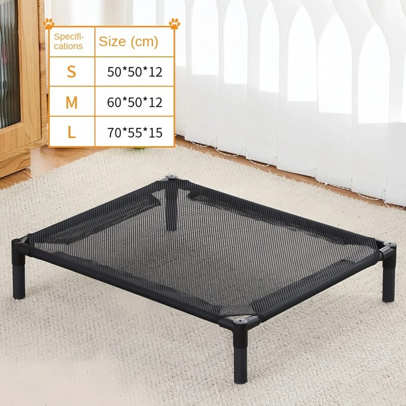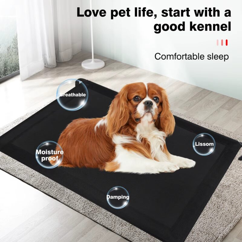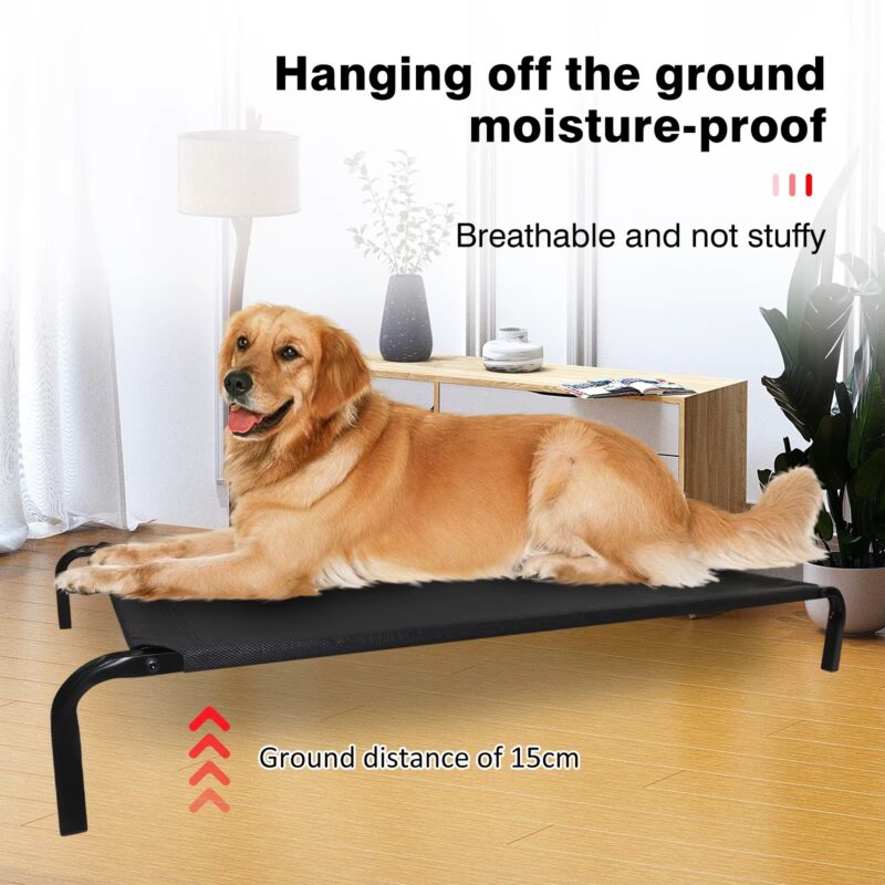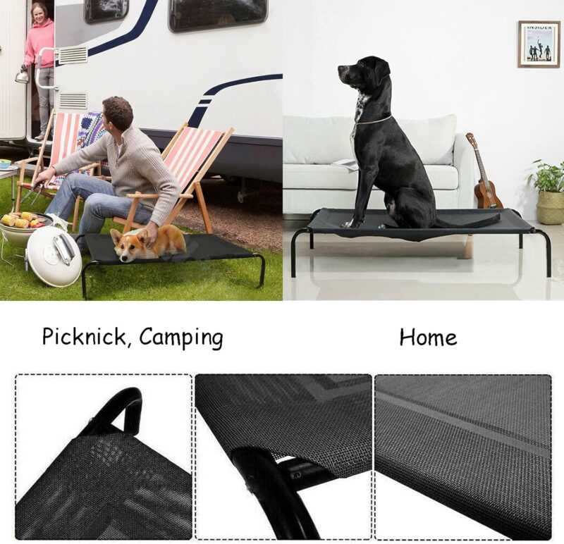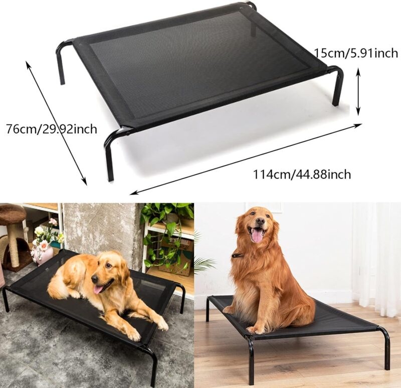 Give your dog the ultimate comfort with this Elevated Dog Bed, designed to keep them cool in summer and warm in winter. The breathable black mesh fabric ensures optimal airflow, while the raised design (12cm or 15cm depending on size) protects against cold, damp floors—perfect for indoor and outdoor use. Whether for your living room, garden, or camping trips, this bed provides a hygienic, scratch-resistant sleeping surface that’s easy to clean and built to last.