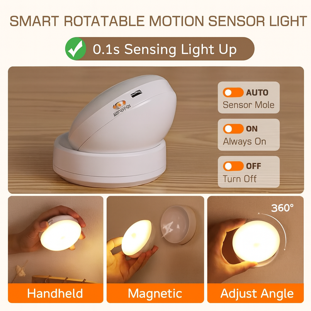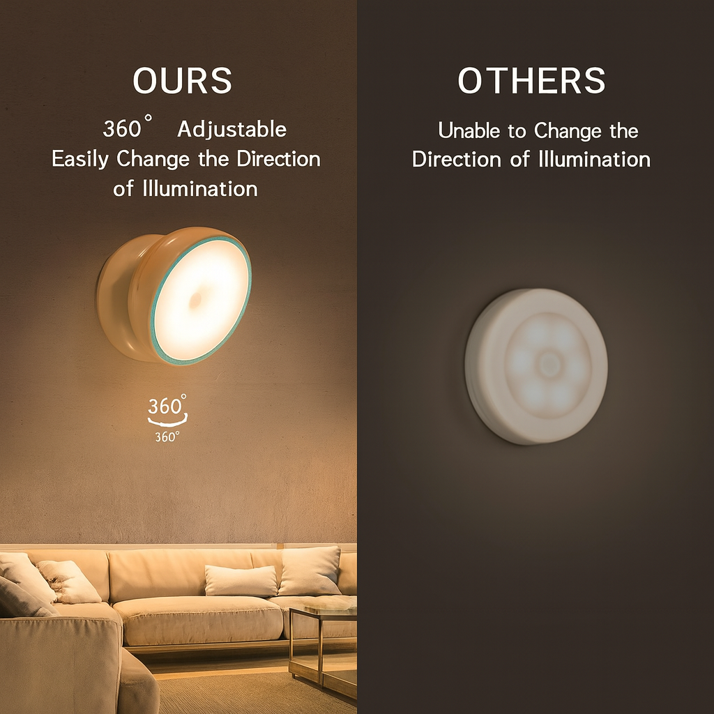 Light your home the smart way with ouur Rechargeable 360° Rotating Night Lamp with Motion Sensor. Whether it’s guiding you safely through dark hallways, providing gentle light in the kitchen at night, or serving as a comforting bedside lamp, this compact yet powerful light has you covered. The built-in motion sensor ensures it only switches on when you need it, conserving energy while giving you effortless illumination at the right moment.