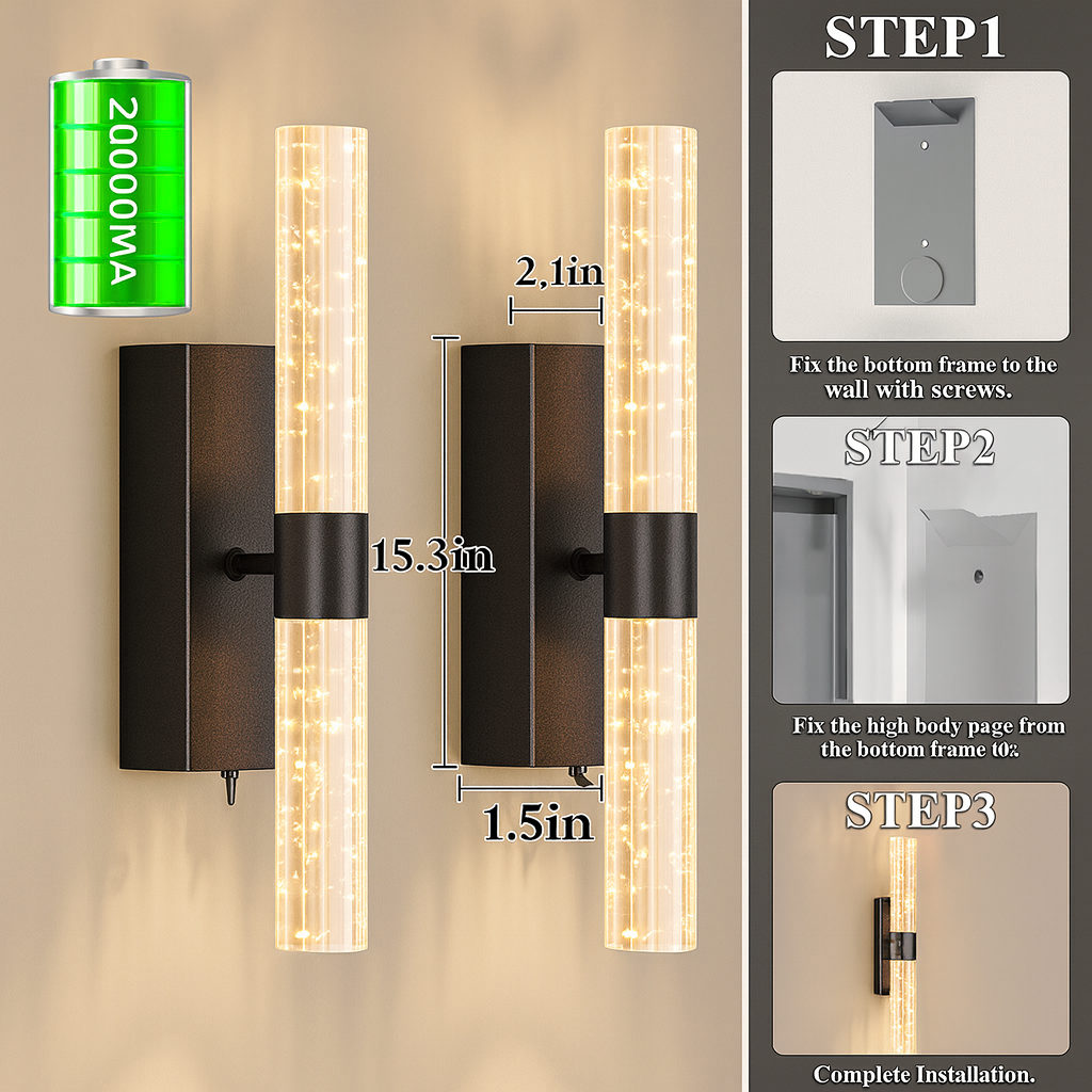 Bring modern sophistication and effortless ambience to any space with the Battery Powered Wall Lamp. Designed for convenience and style, this rechargeable 5000mAh LED wall lamp offers warm, dimmable illumination that transforms your bedroom, living room, or hallway into a serene haven. Its sleek aluminium body and crystal-clear lampshade create a captivating light effect perfect for both daily use and elegant evening settings.