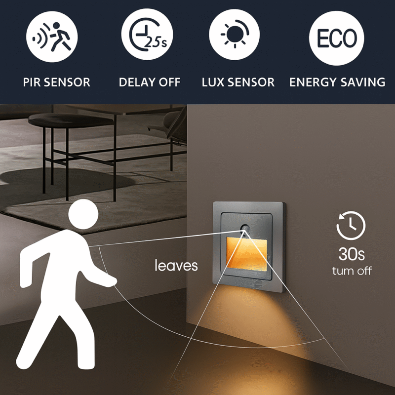 Illuminate your home with style and safety using the Picadex PIR Motion Detector Sensor LED Stair Light. Designed with advanced infrared human body induction, this recessed step light switches on automatically when it senses movement within 3 metres, then turns off when you leave saving energy while keeping you safe in the dark.