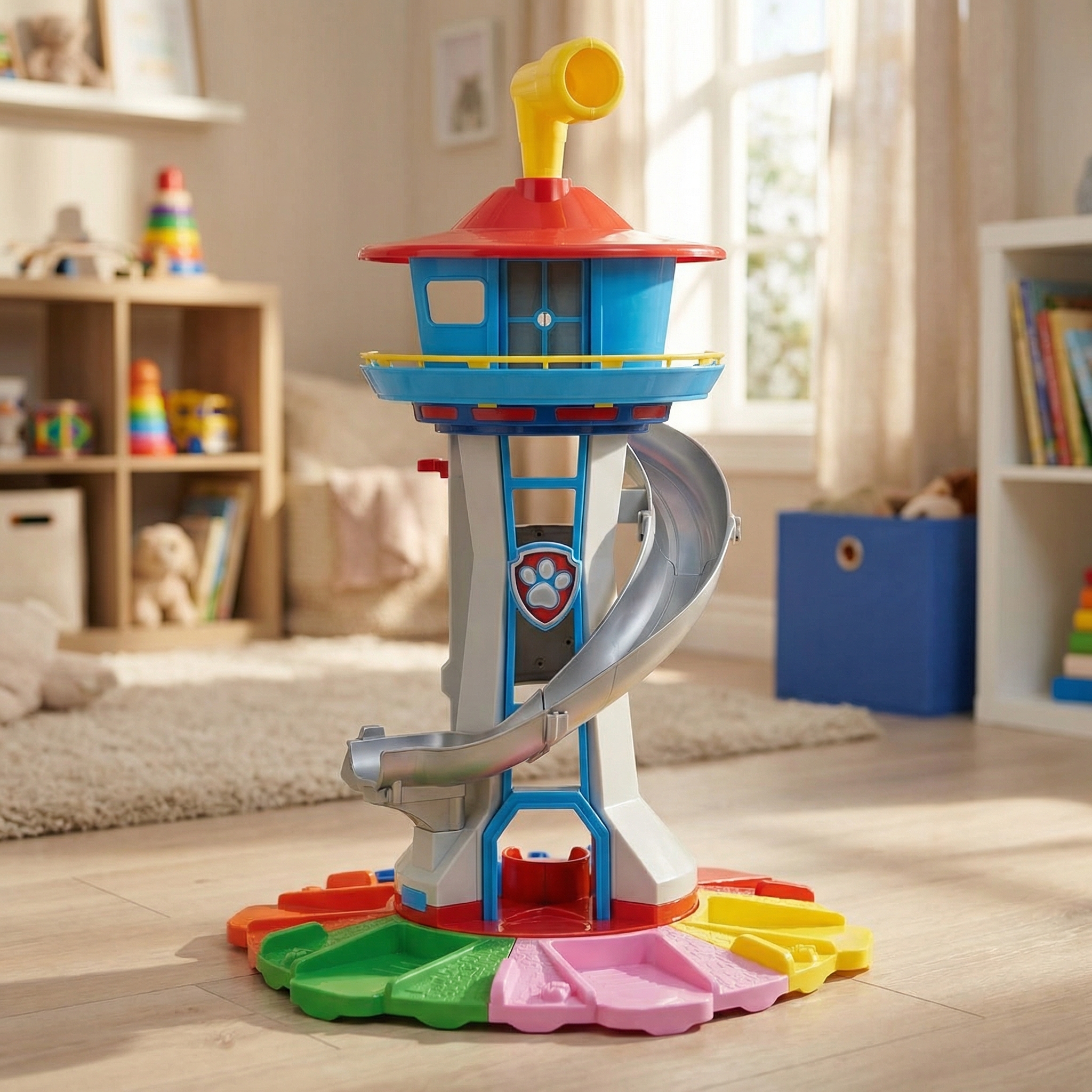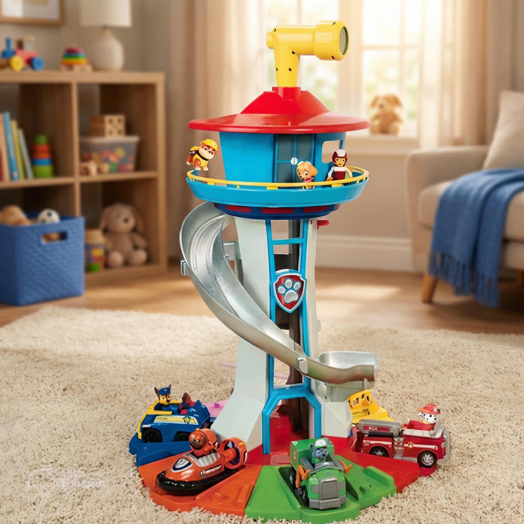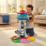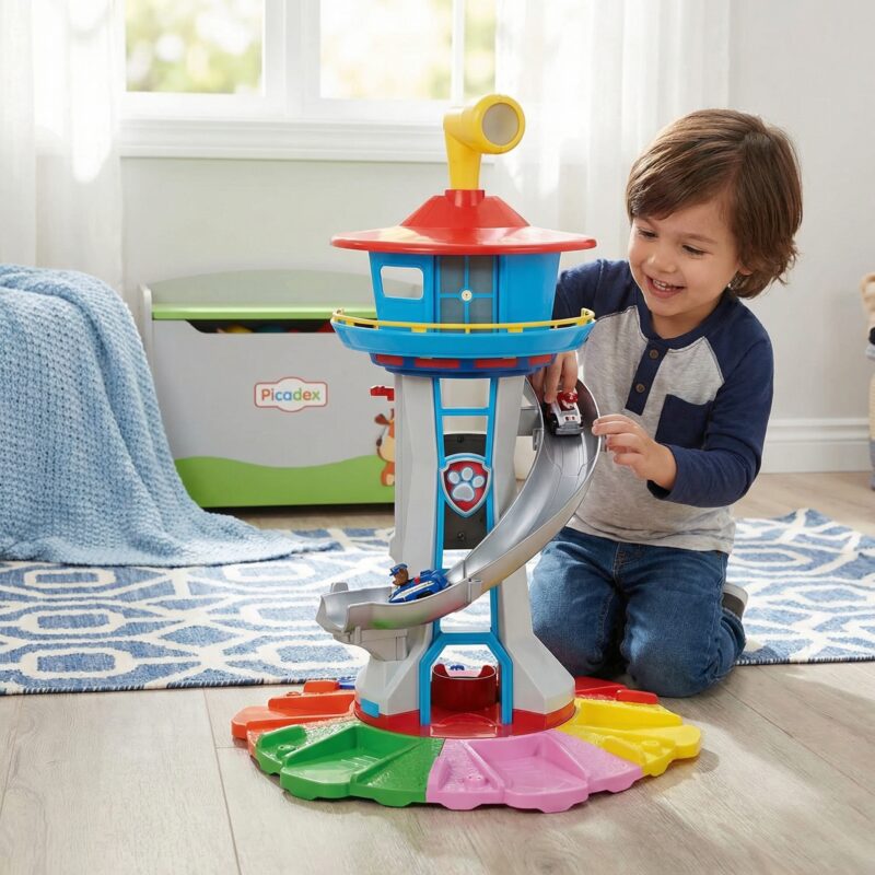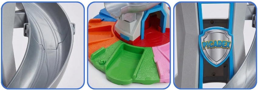 - Package Includes: 1x SkyTower Base, 1x Spiral Slide, 6x Vehicles/Figures, Instruction Manual