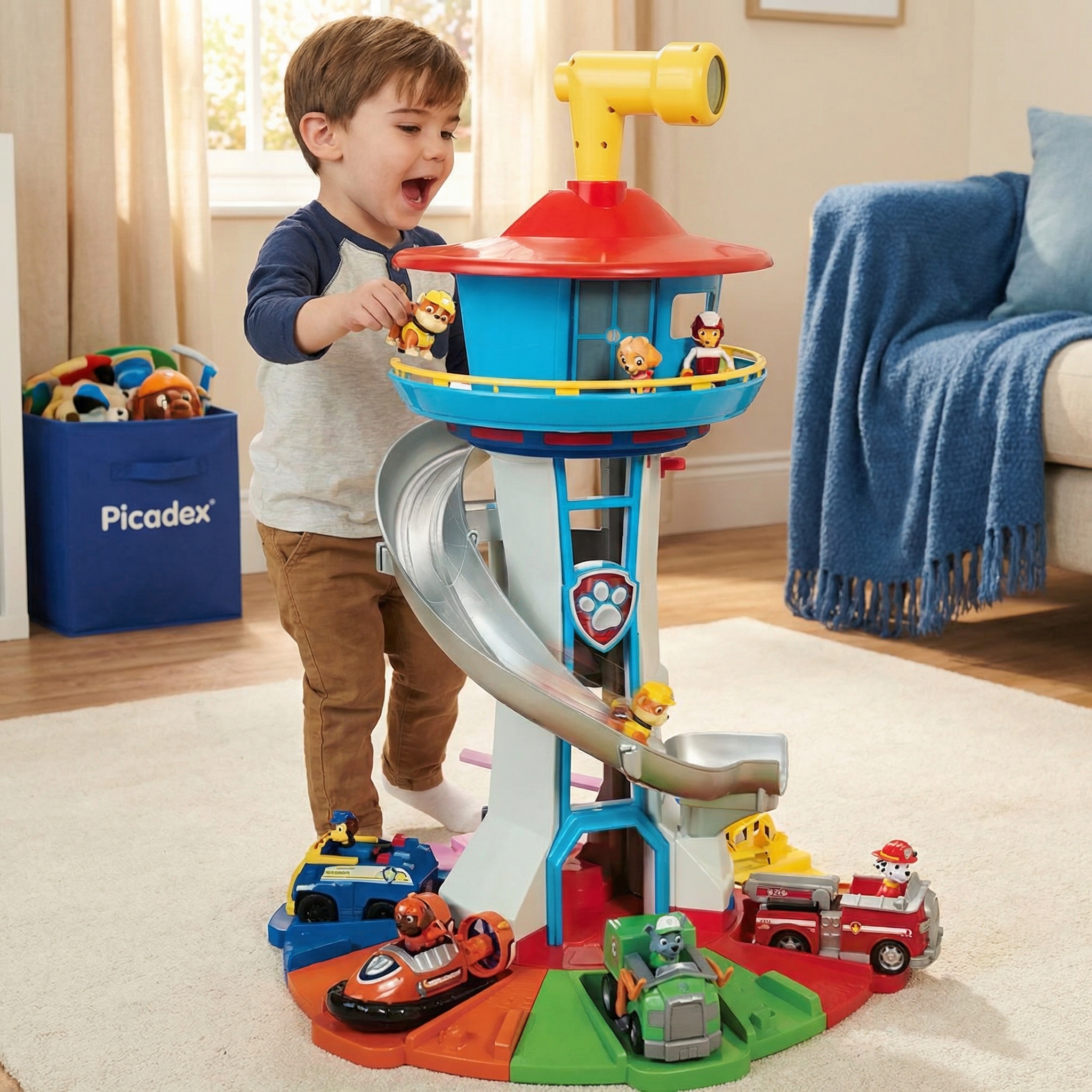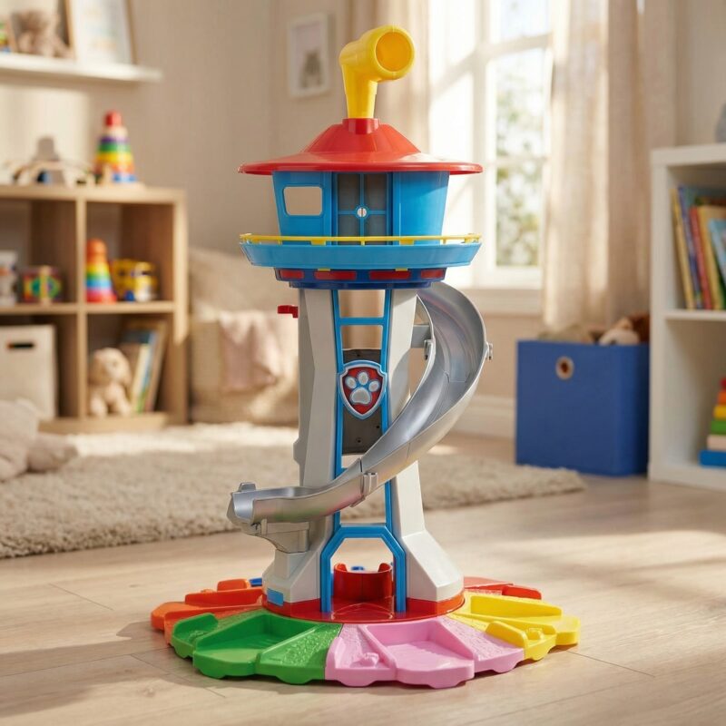The SkyTower Adventure Playset brings heroic rescue missions to life. This 52cm tall lookout tower features a dynamic spiraling slide and six detailed vehicles, perfect for sparking imaginative role play. Designed for durability and safety, it provides a robust activity centre that helps develop fine motor skills and social interaction during group play sessions.