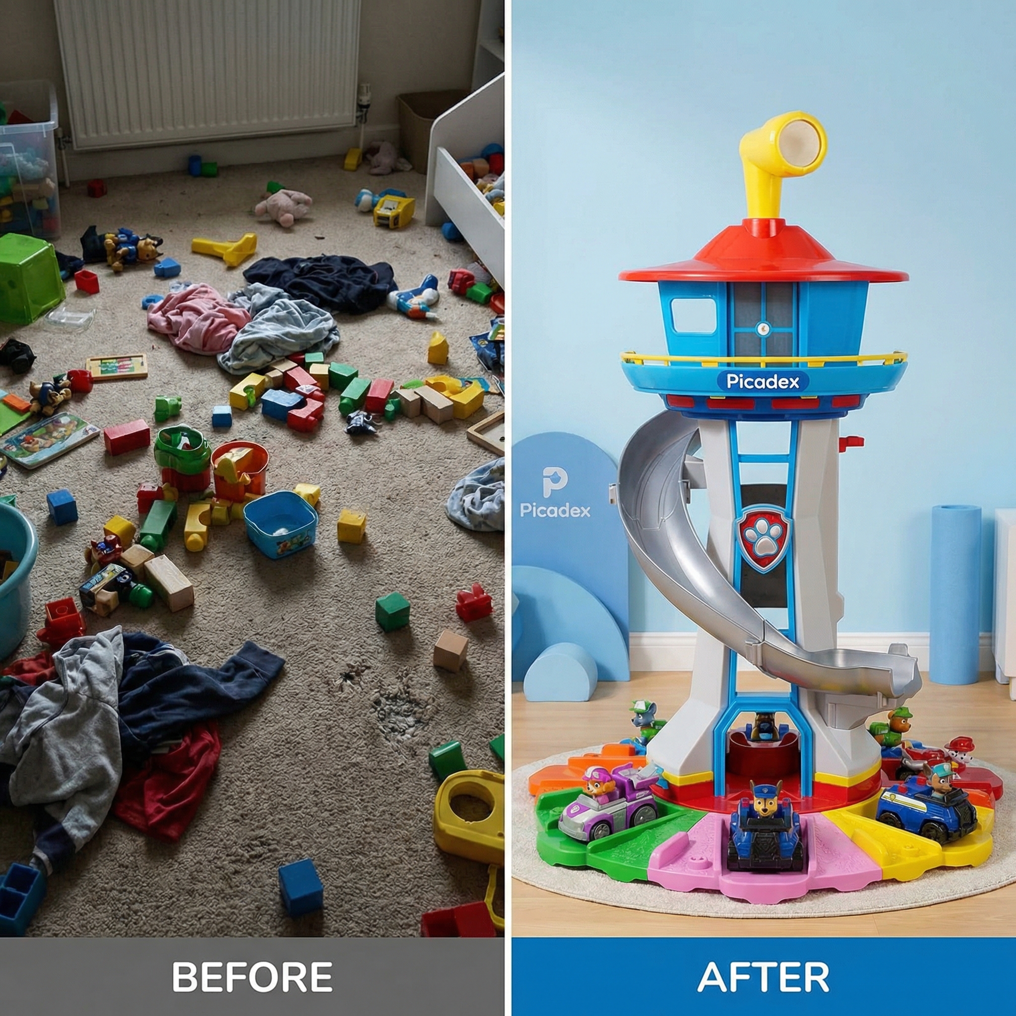 Assembly is effortless with our tool-free setup, ensuring your children are ready for action in minutes. The vibrant, multi-coloured base serves as an organised parking garage for the included cars. Made from high-quality, non-toxic plastic, this playset is suitable for both indoor and outdoor use, making it the perfect gift for young explorers.