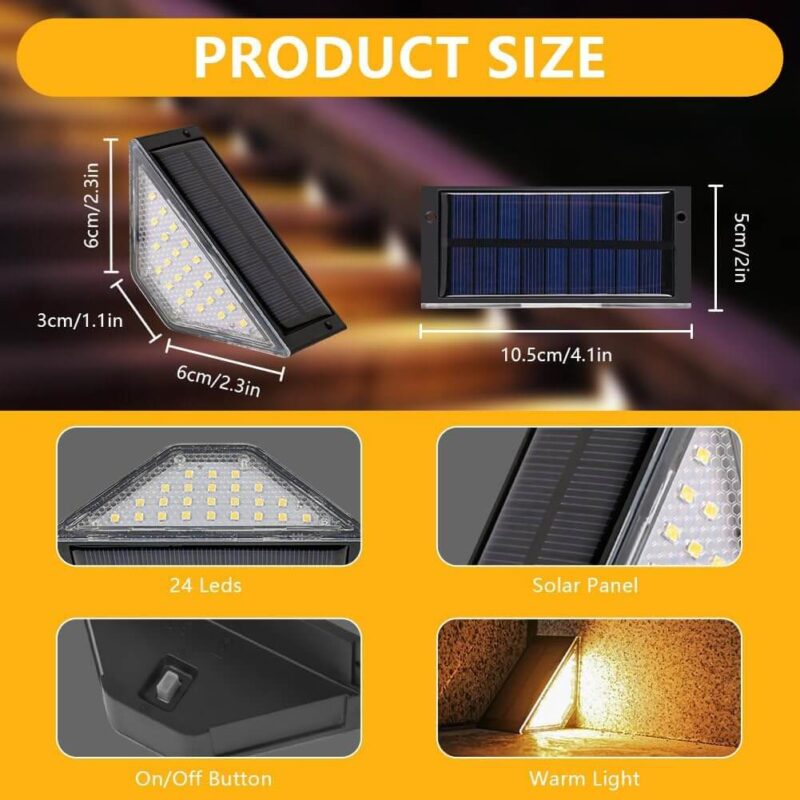 Upgrade your outdoor space with our Solar Powered Step Lights, designed to blend elegance with functionality. Whether lining your garden path, deck, or driveway, these triangle-shaped lights provide warm white or vibrant RGB lighting to create a stunning ambience while ensuring safety. No wiring, no hassle, just pure solar-powered convenience!