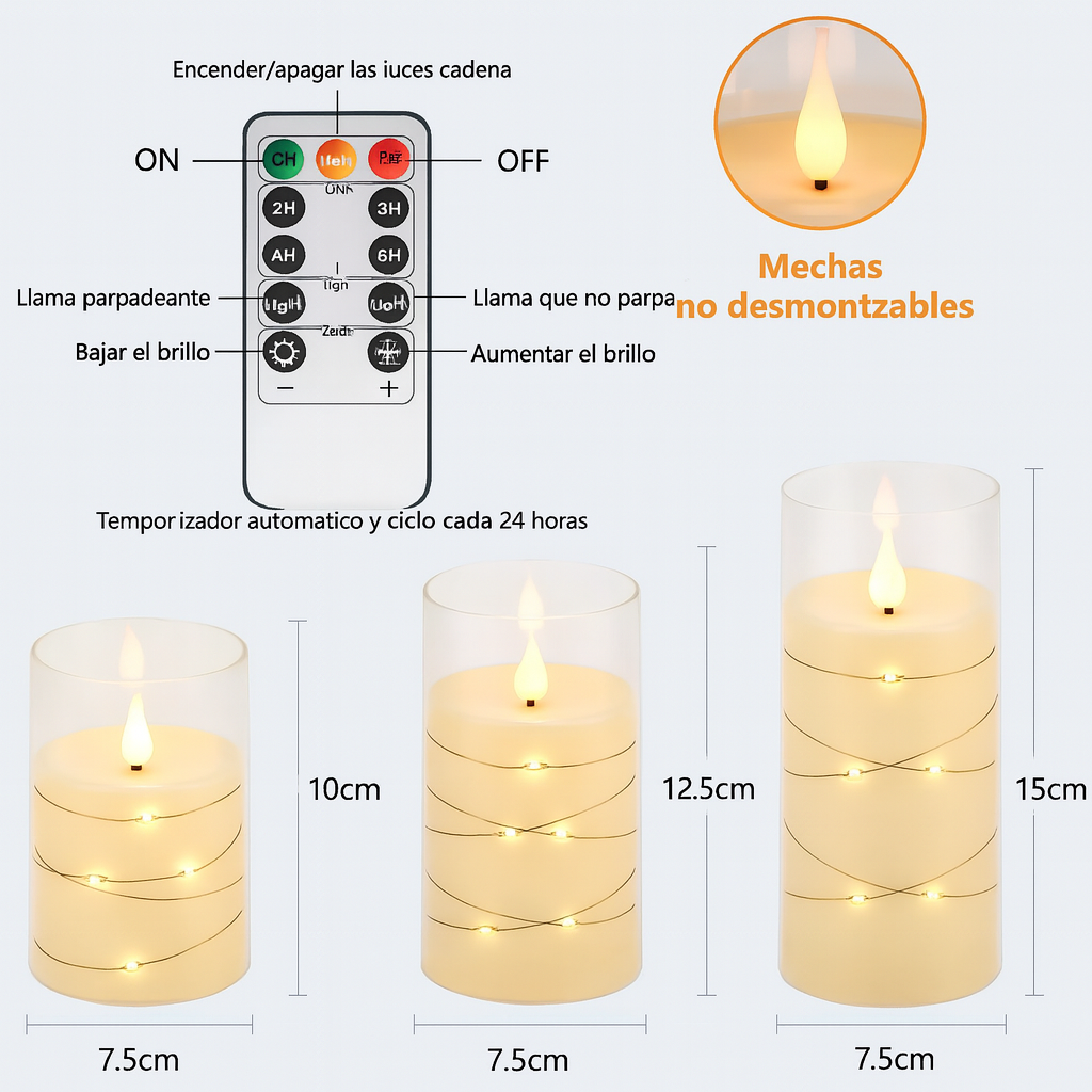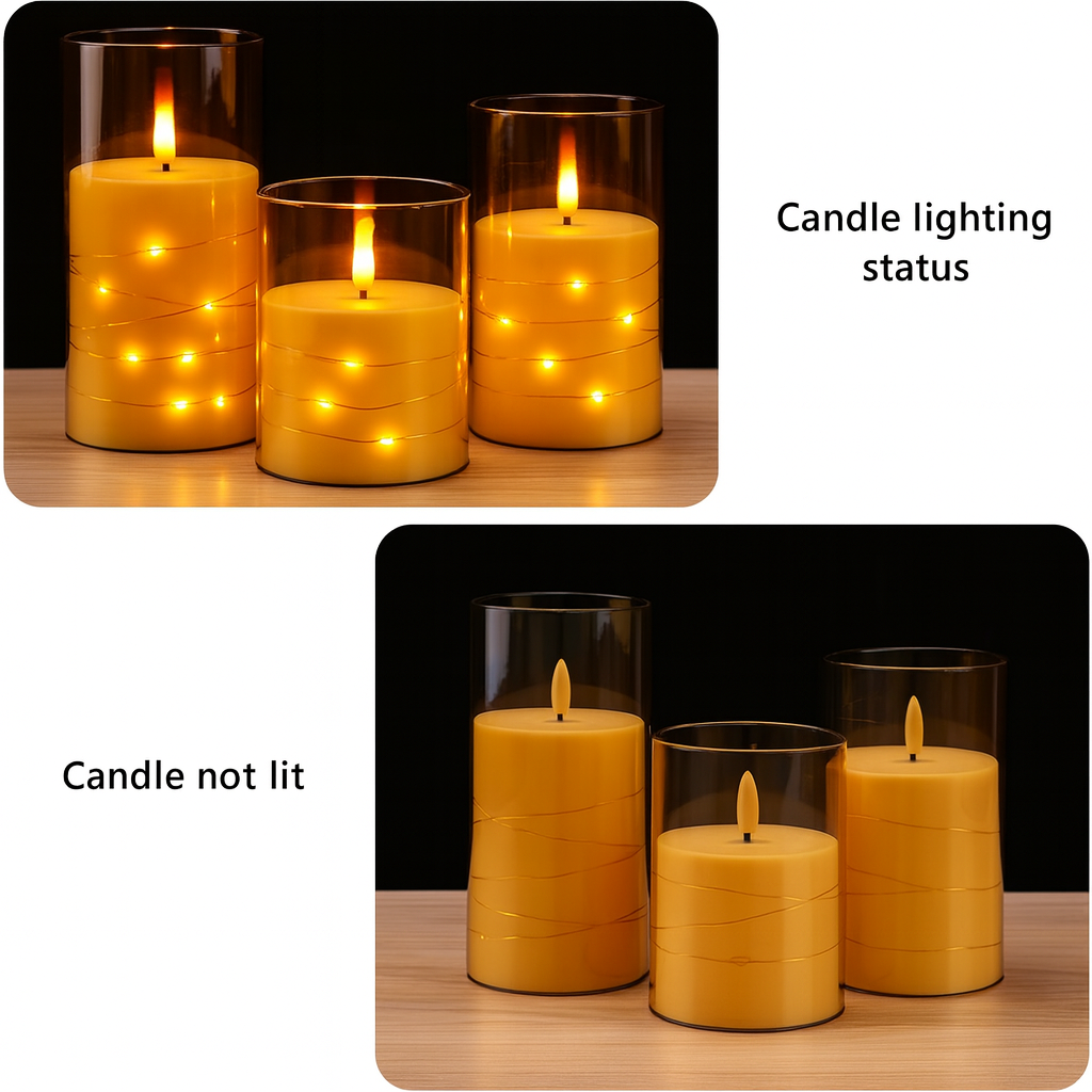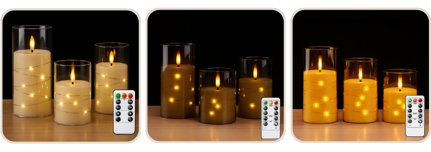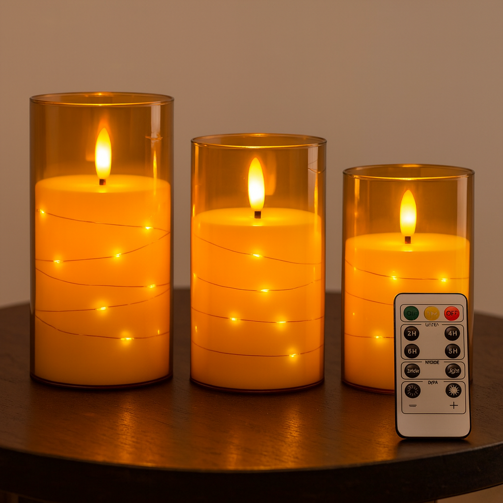 Each candle features delicately woven micro star lights within, adding an enchanting sparkle that traditional candles simply can’t match. Powered by batteries and controlled with a handy remote, you can set the timer, adjust brightness, or switch between flicker and steady light modes effortlessly. Safe, elegant, and endlessly reusable  it’s time to elevate your home décor with this must-have lighting solution.