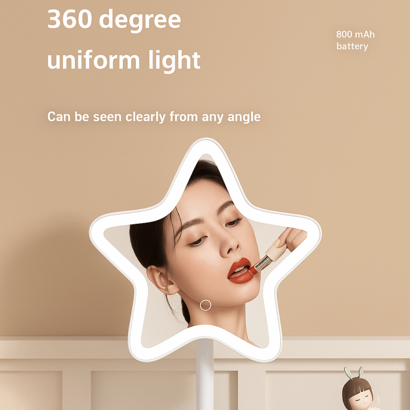 Turn your beauty routine into a magical experience with our Star Shaped LED Makeup Mirror. Designed with a whimsical star silhouette and modern Ins-style elegance, this mirror doesn’t just reflect your image, it illuminates it. The built-in LED fill light offers soft, even lighting, making it perfect for flawless makeup application, skincare routines, or a quick touch-up before heading out.