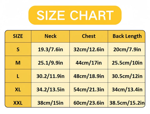 - Measurement Guide: Please use a soft tailor’s tape to measure your dog’s chest and neck before ordering to ensure the perfect fit.