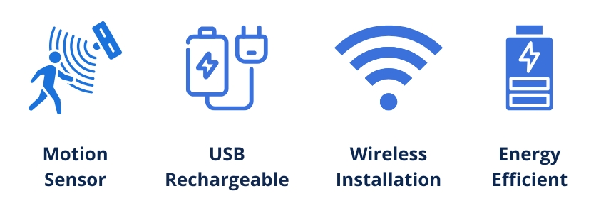 • Wireless cordless design – No complicated wiring or electrical work required for quick installation