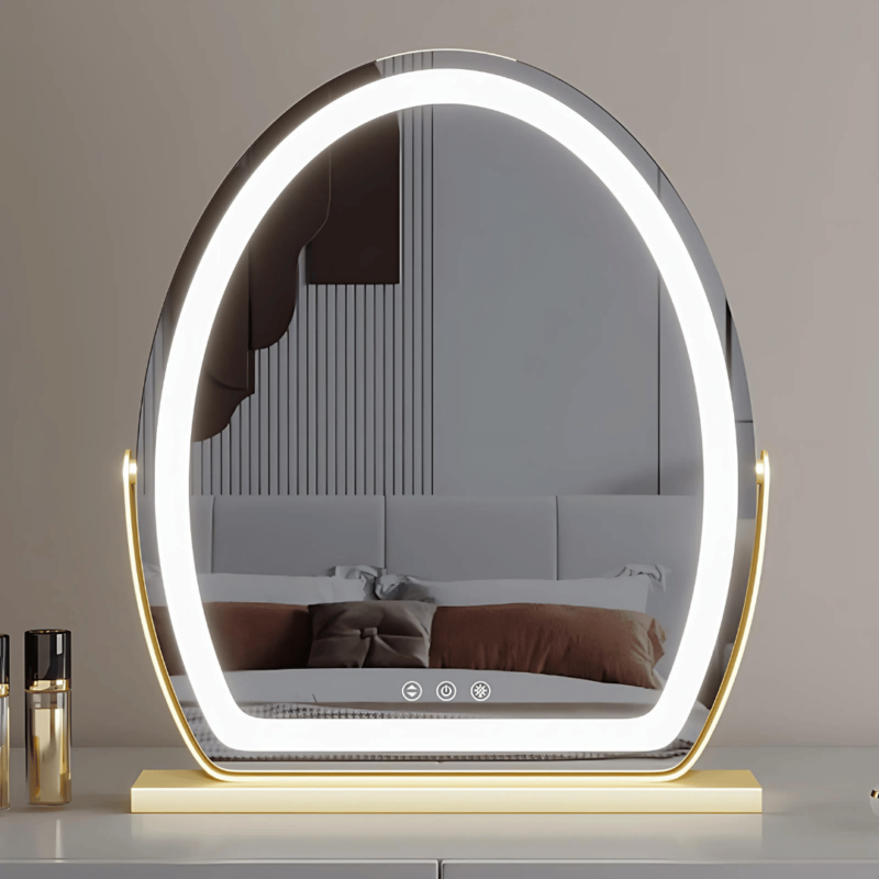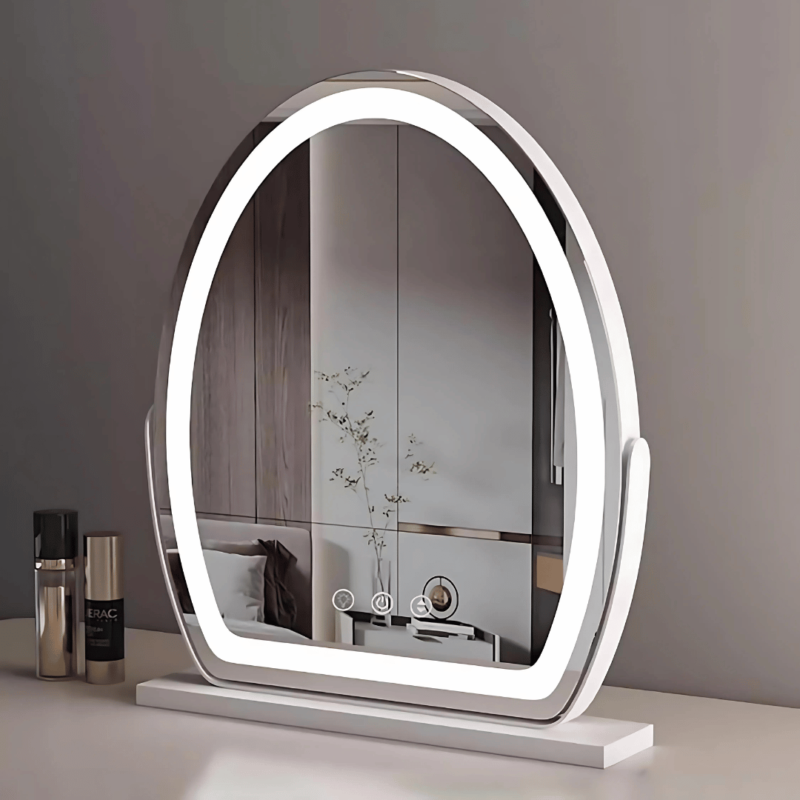 Meet your new beauty essential – Our Wireless Vanity Mirror. Designed with elegance and function in mind, this high-definition LED mirror transforms your daily routine into a luxurious experience. Whether you’re applying makeup, filming beauty content, or prepping for a night out, the adjustable lighting and 360° rotation give you full control and perfect clarity from every angle. The oval-shaped mirror sits beautifully on any dressing table, while the sleek gold, white, or black finish adds a modern touch to your space.