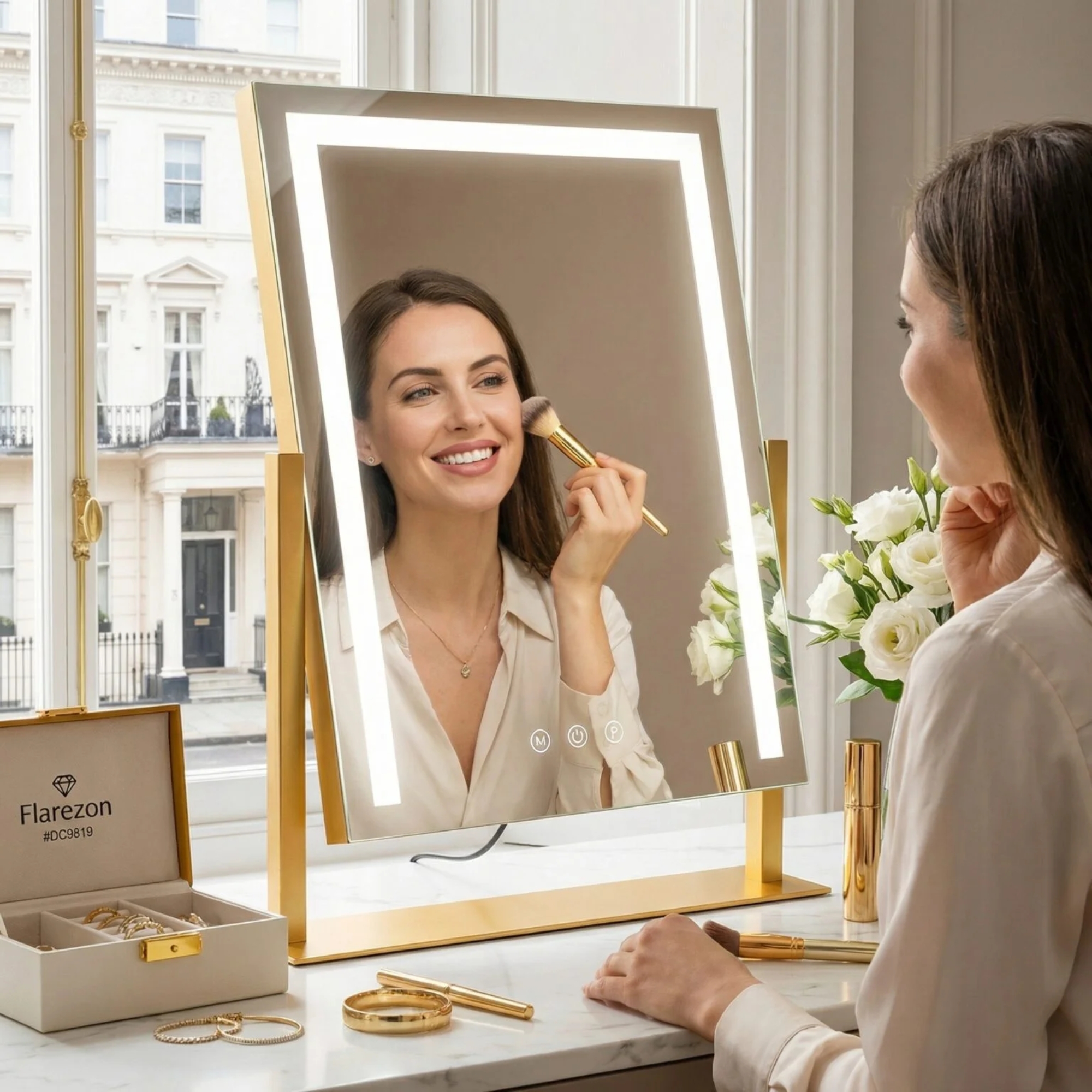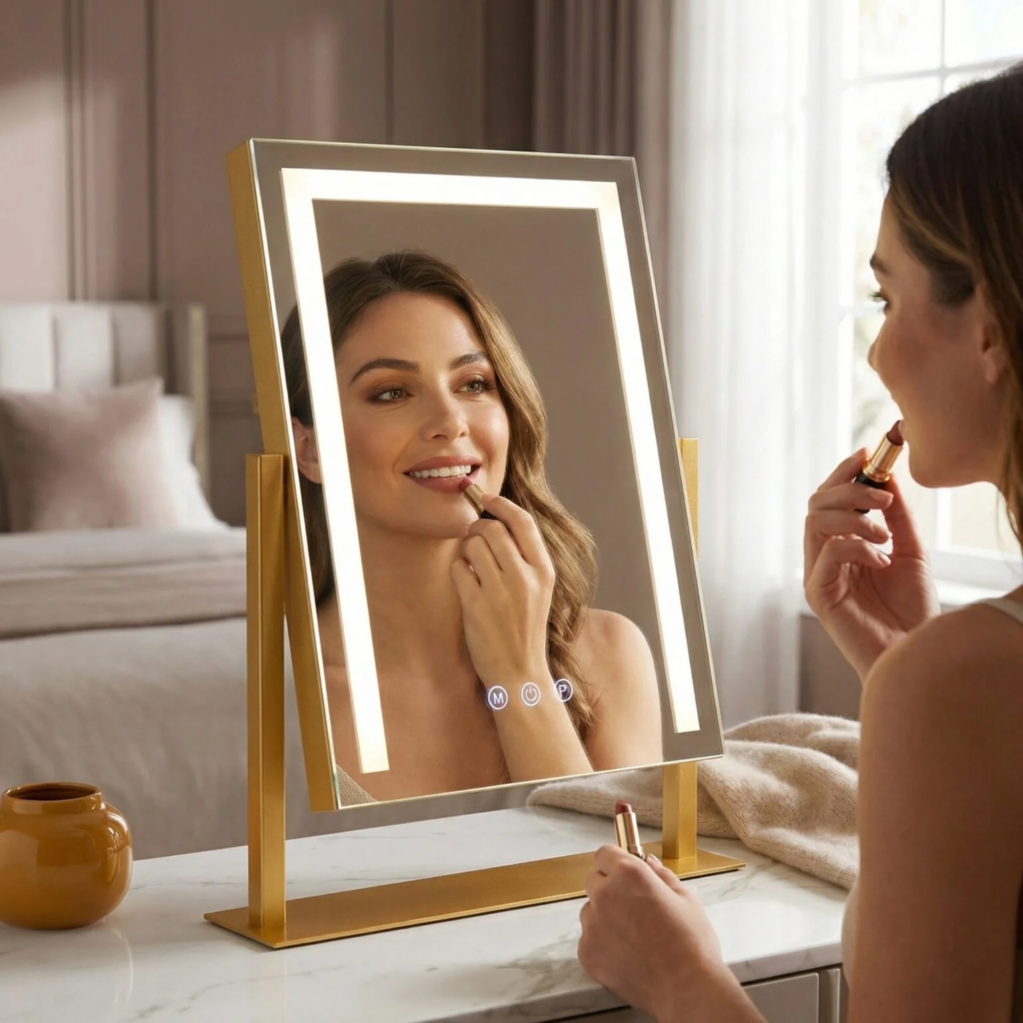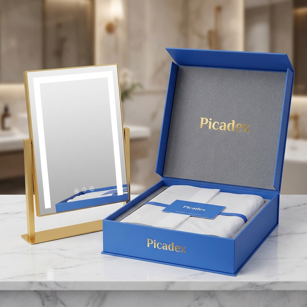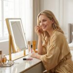 Designed for the modern bedroom, this vanity mirror with lights offers stepless dimming via responsive smart touch control. The 360-degree rotation allows you to find your best angle effortlessly. Available in premium Gold, White, or Black finishes, it meets strict UK safety standards, making it the ultimate luxury upgrade for your vanity.