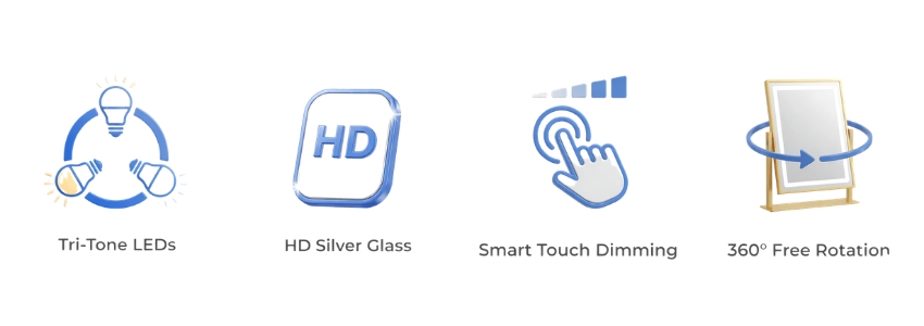 • Tri-Tone Lighting: Instantly switch between Warm, Natural, and Cool white modes.