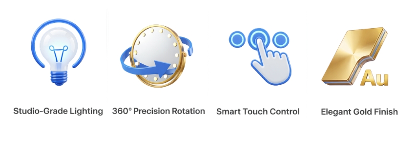 - Studio Lighting: 12 G35 LED bulbs for pro-level clarity.