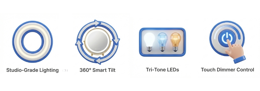 - Tri-Tone LED: Switch between warm, natural, and cool light settings effortlessly.