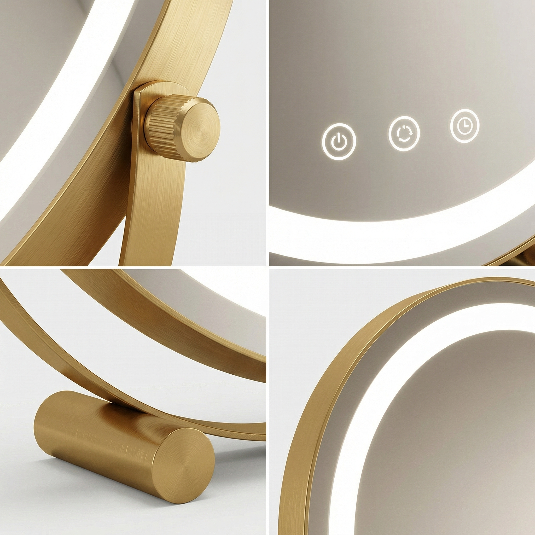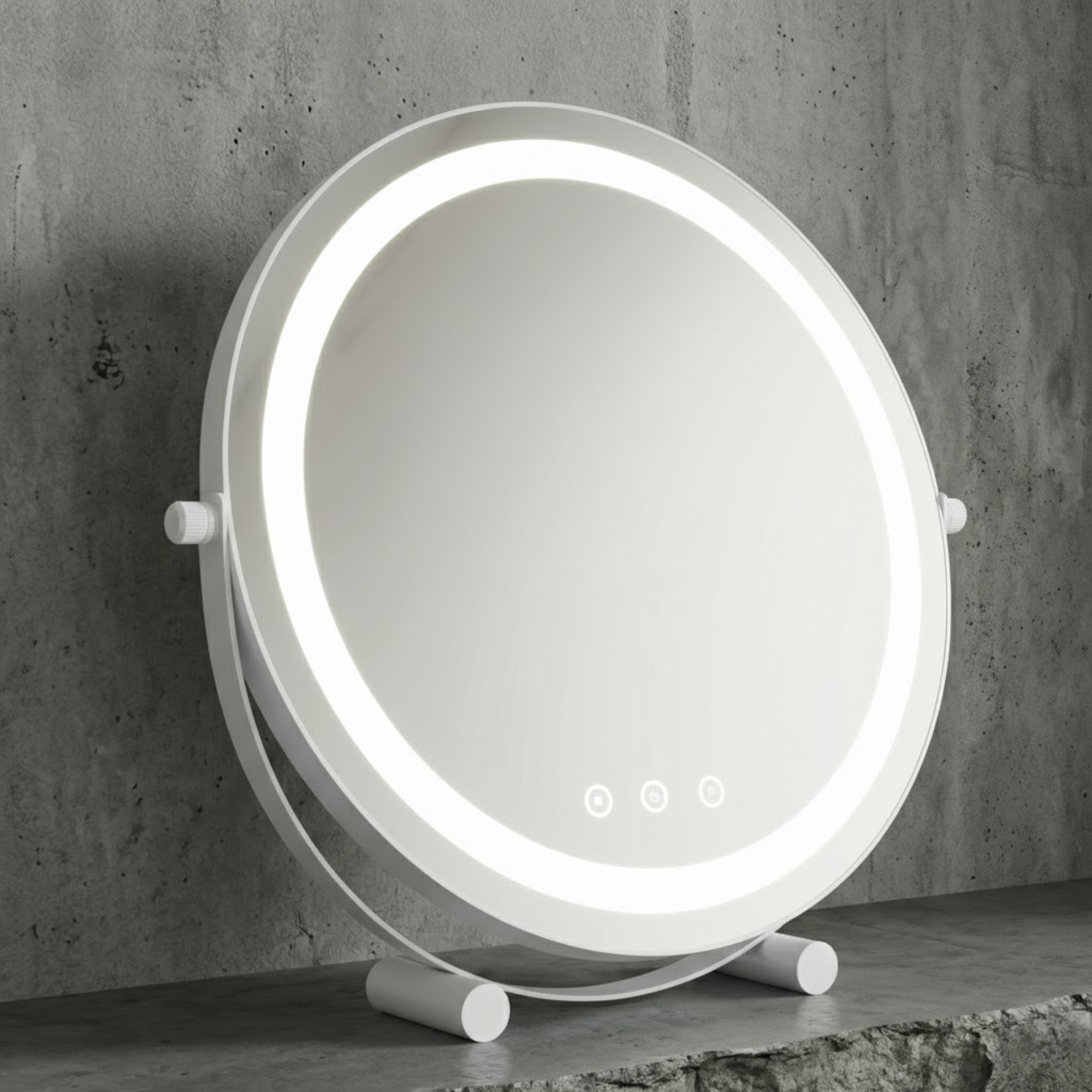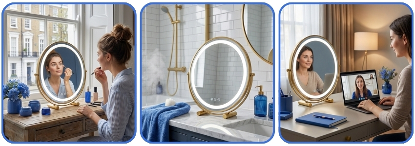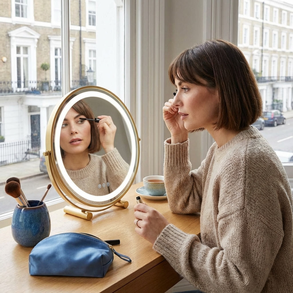 Crafted with a durable metal frame and available in 30cm to 50cm sizes, this mirror fits any interior style. Featuring 360-degree rotation and smart touch control dimming, it provides the ultimate flexibility for detailed grooming. Rest assured with UK safety standards and a sturdy anti-slip base that protects your furniture while you achieve that flawless glow.