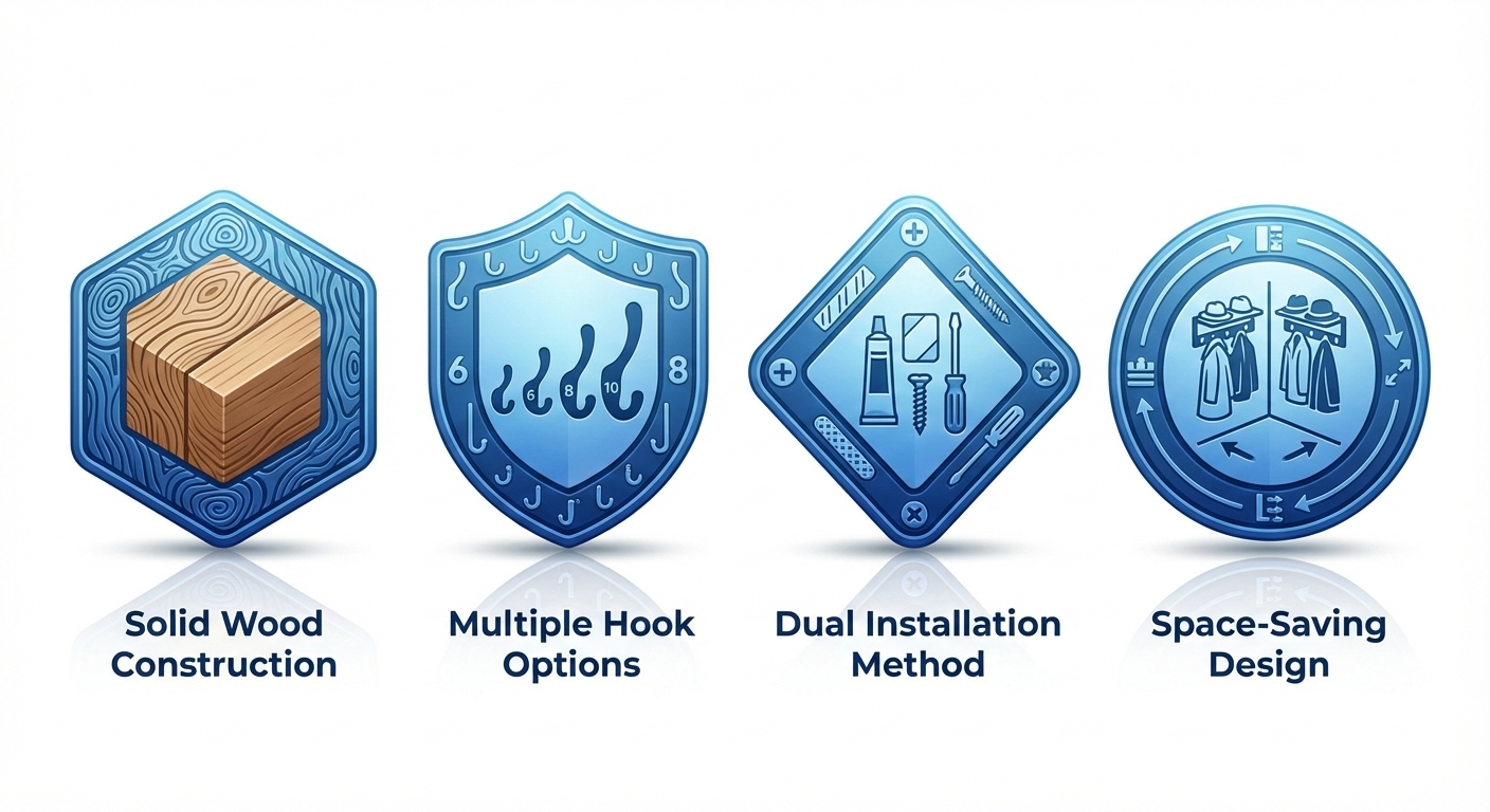 - Multiple Hook Configurations – Choose 6, 8, or 10 hooks matching your storage requirements and available wall space