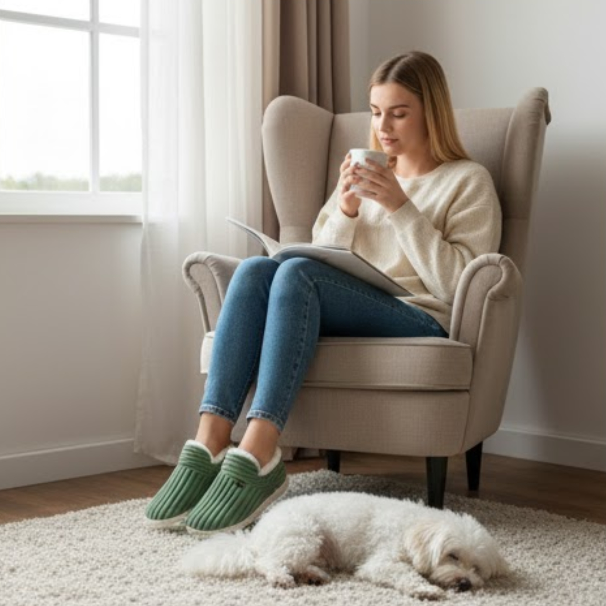 Yes, the non-slip sole allows brief outdoor use for tasks like collecting deliveries, checking the garden, or quick trips to the bin. They’re designed primarily for indoor comfort and aren’t suitable for extended outdoor walking or wet conditions.