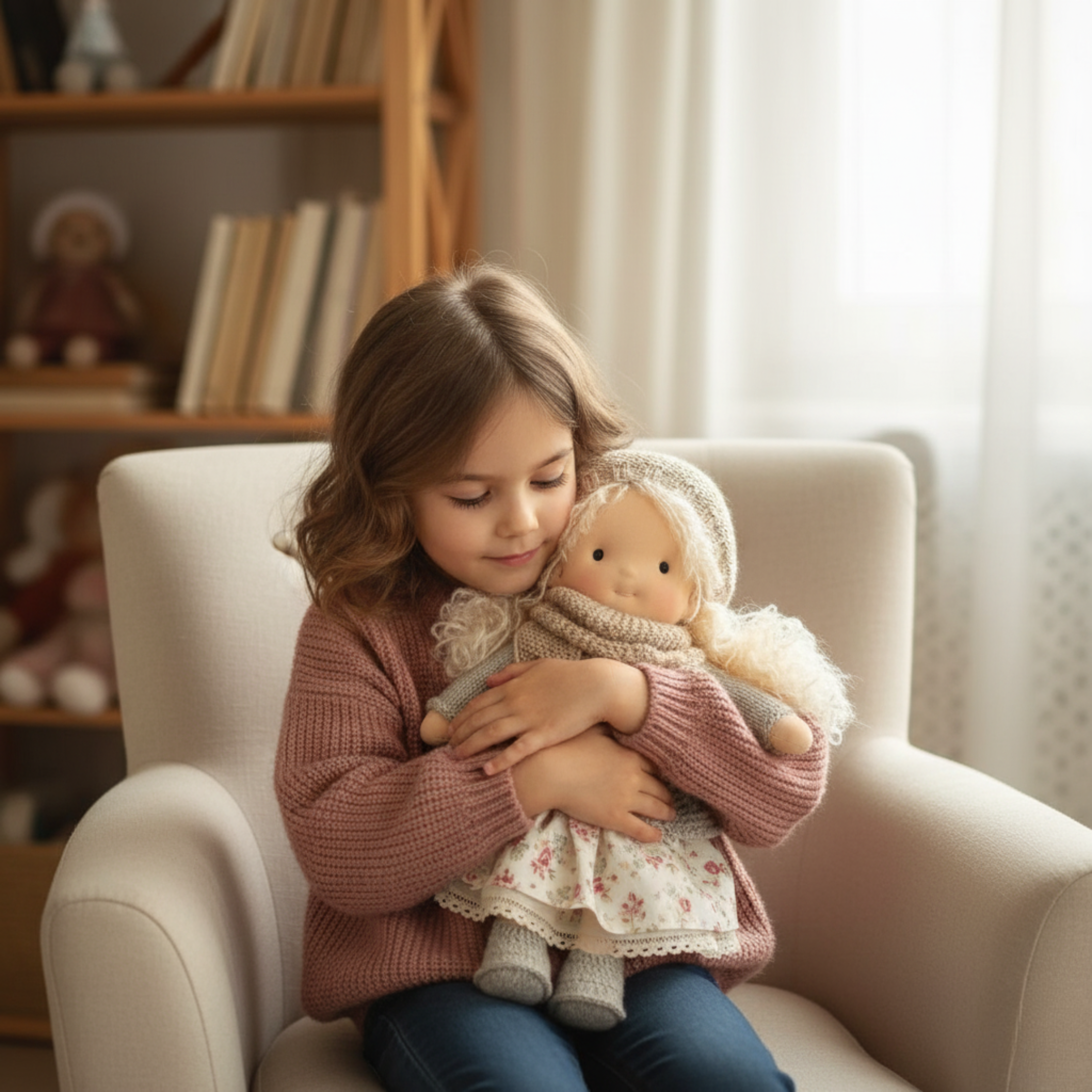 Discover the magic of childhood with our Soft Plush Waldorf Handmade Doll – a beautifully crafted companion designed to inspire imagination, comfort, and joy. Lovingly made from premium cotton fabric, each doll features delicate hand-stitched details, soft textures, and timeless charm that both children and collectors will adore. Its gentle expression and cosy knitted outfit make it a heart-warming gift for birthdays, special occasions, or simply to cherish every day.