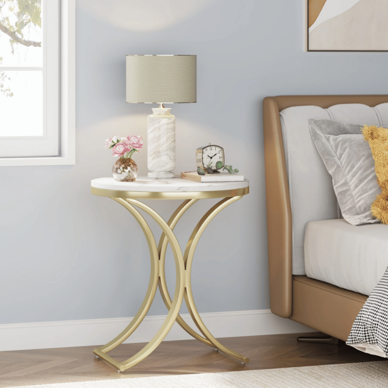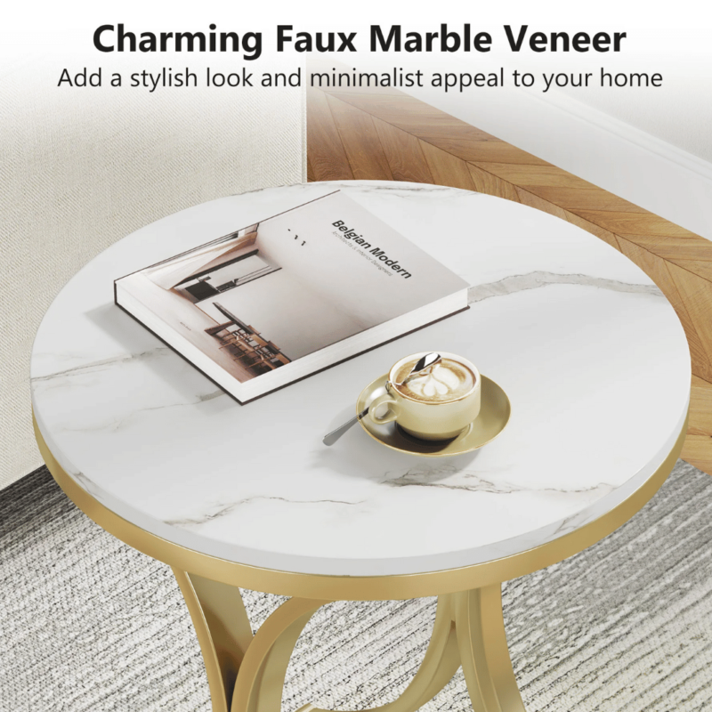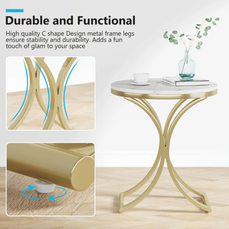 - Modern and Stylish Design: Clean lines, faux marble textures, and gold metal C legs make this circle bedside table a luxurious addition to any room.